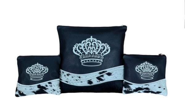 סט טלית ותפילין יוקרתי "כתר המלכות" – עור משולב פרווה טבעית בשחור לבן