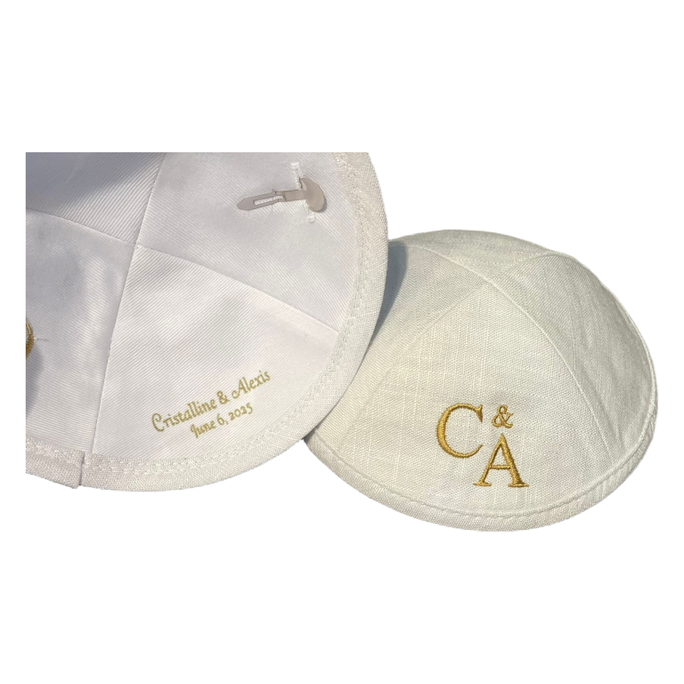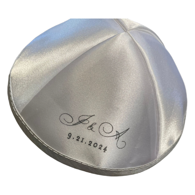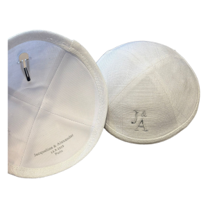 ניתן להזמין כיפה עם רקמה או הדפסה למזכרת מבר מצווה או חתונה.