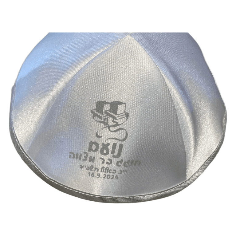 ניתן להזמין כיפה עם רקמה או הדפסה למזכרת מבר מצווה או חתונה.