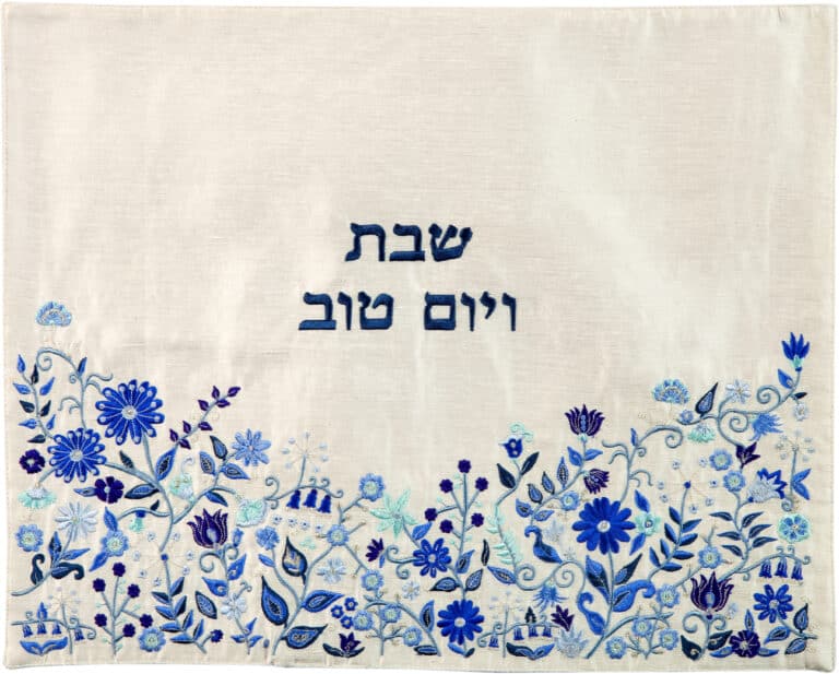 כיסוי חלה לשבת עם רקמה של פרחים בגווני כחול