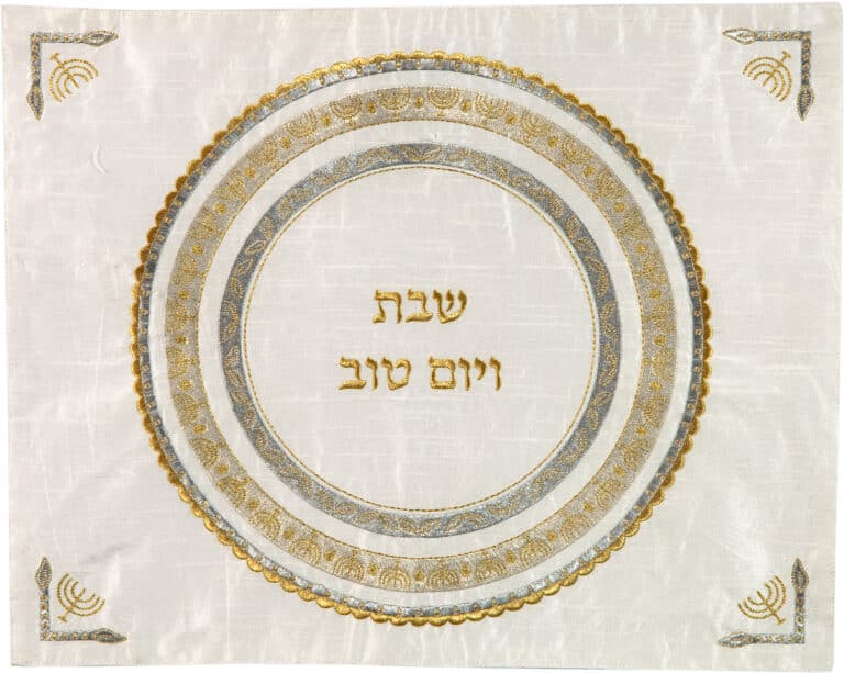 כיסוי חלה לשבת עם רקמה בסגנון אתני בגווני זהב וכסף