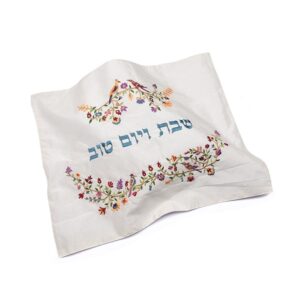 כיסוי חלה לשבת עם רקמה של פרחים צבעוניים