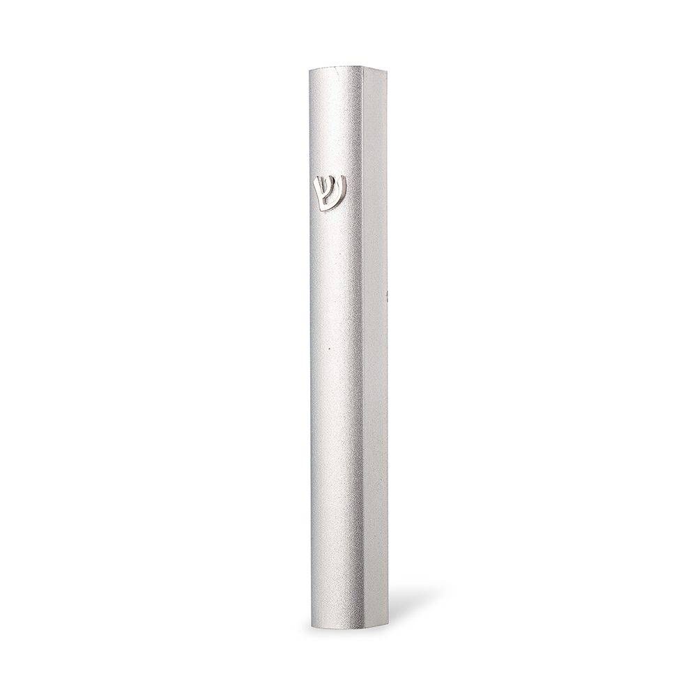 בית מזוזה קלאסי מאלומיניום בצבע כסף מבריק עם טקסטורה עדינה – מתאים לכל קלף עד 12 ס”מ