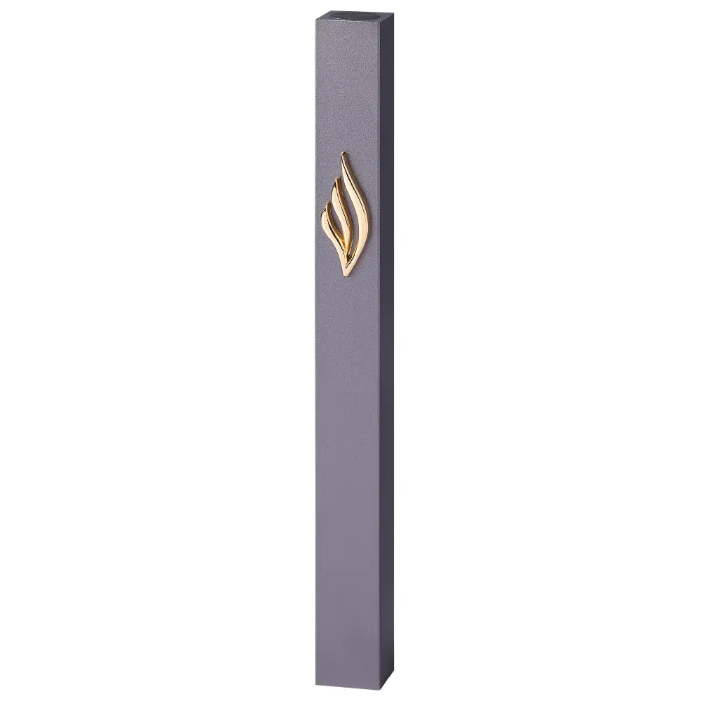 בית מזוזה מאלומיניום בצבע אפור כהה עם אות ש מוזהבת – מתאים לכל קלף עד 12 ס”מ