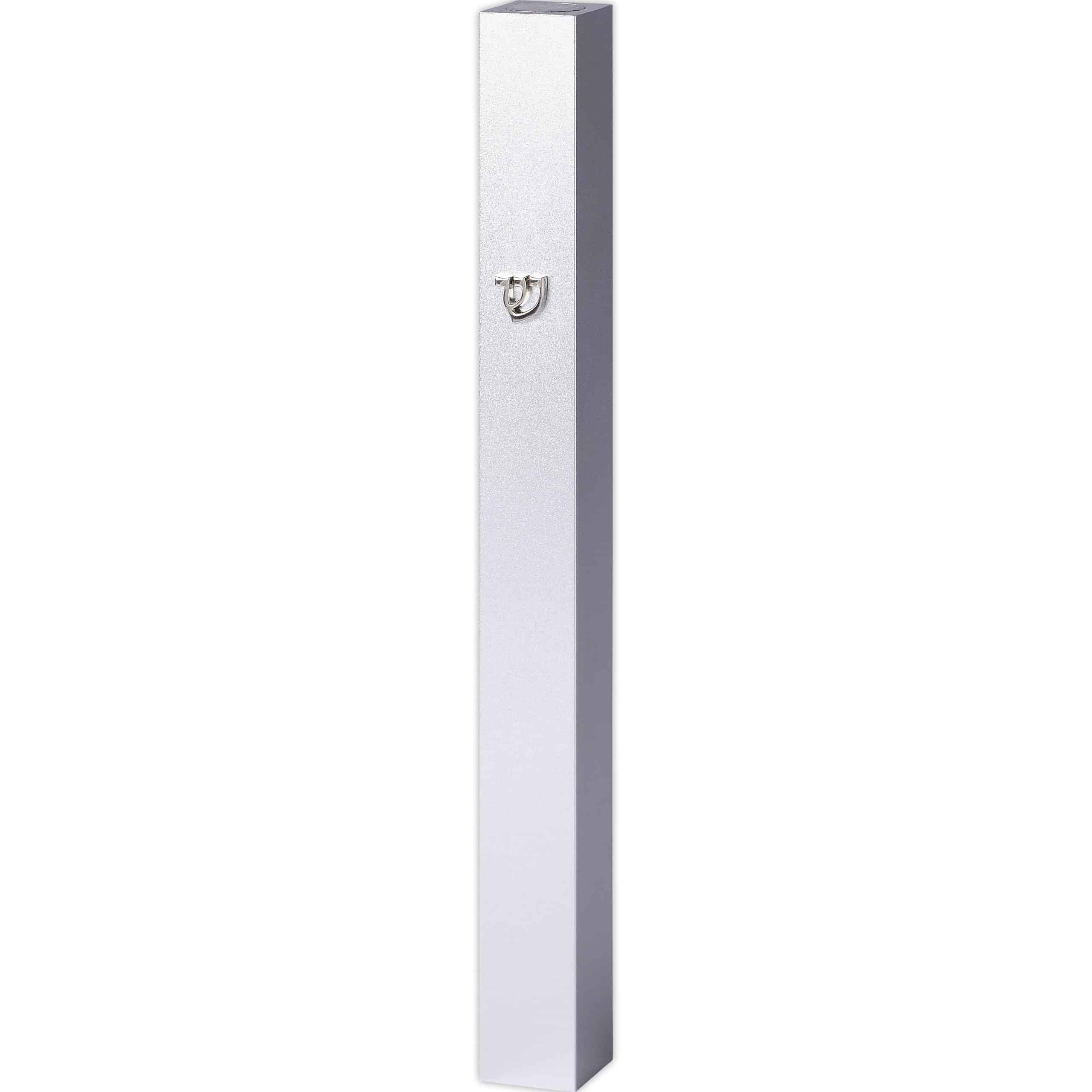 בית מזוזה מאלומיניום בצבע כסף בסגנון אורבני – מתאים לכל קלף עד 12 ס”מ