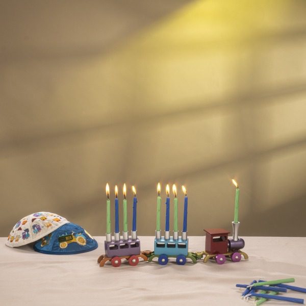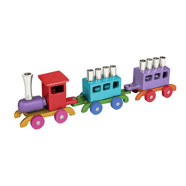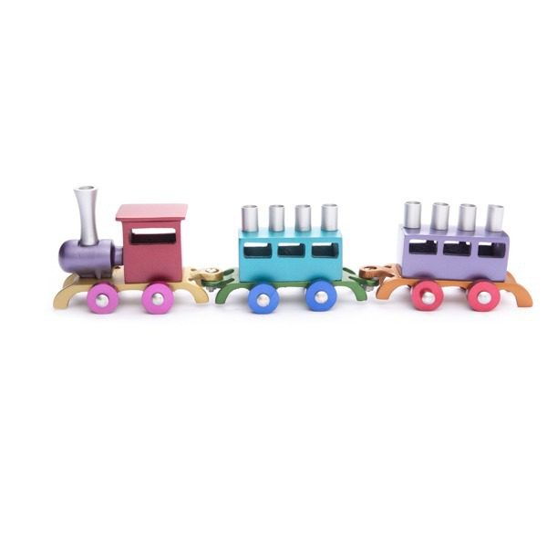 תשעת הקנים של החנוכיה עשויים מאלומיניום צבוע בצבעי אנודייז שונים. החנוכיה מעוצבת כדגם של רכבת, כשארובת קטר הרכבת משמשת כשמש.