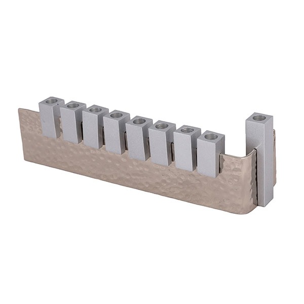 חנוכייה מפס אלומיניום כסוף מרוקע עם קנים מתחלפים