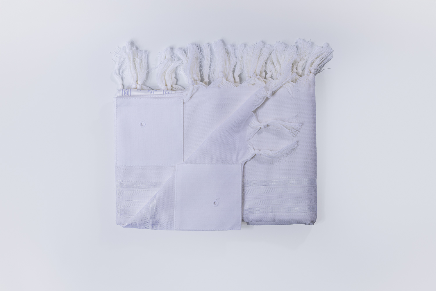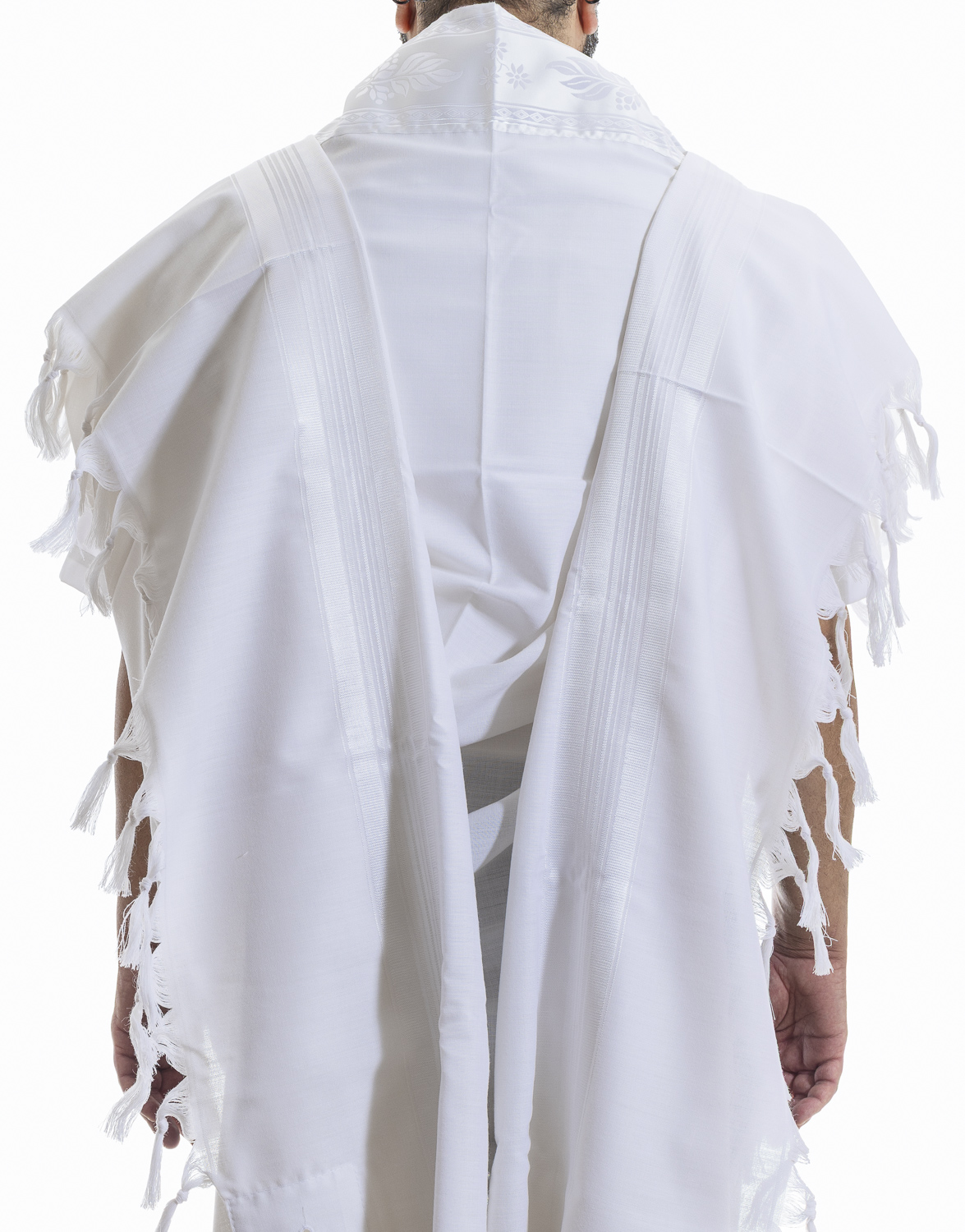 טלית לבנה מצמר רחלים טהור למהדרין מן המהדרין.