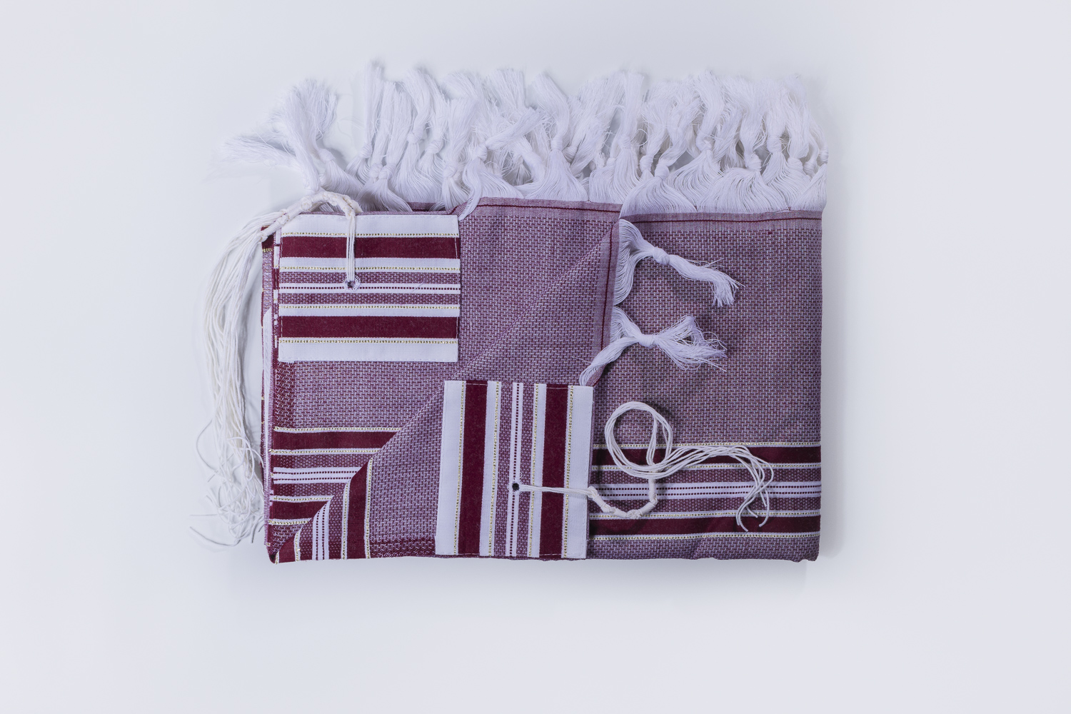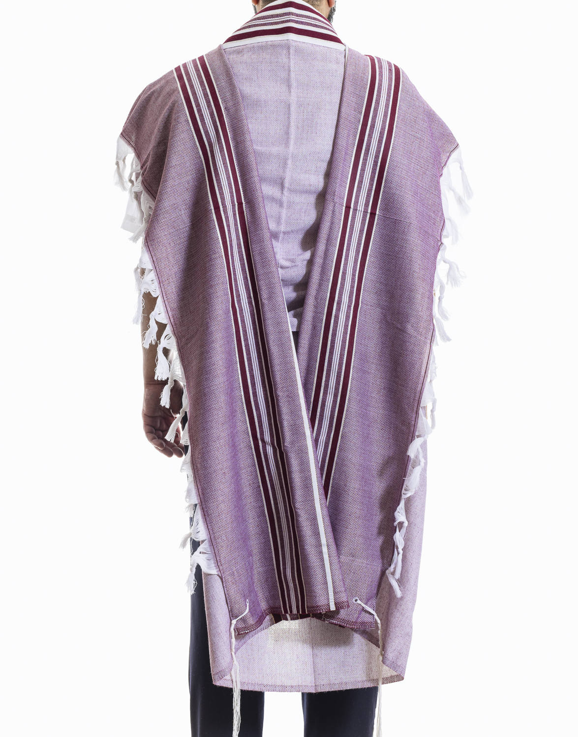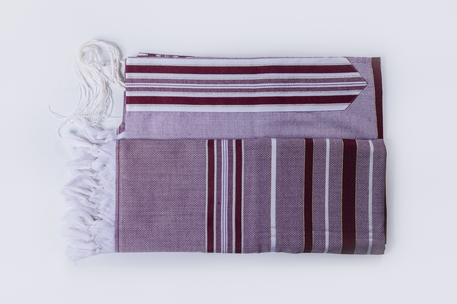 טלית מהודרת מצמר עם פסים בגווני בורדו וזהב