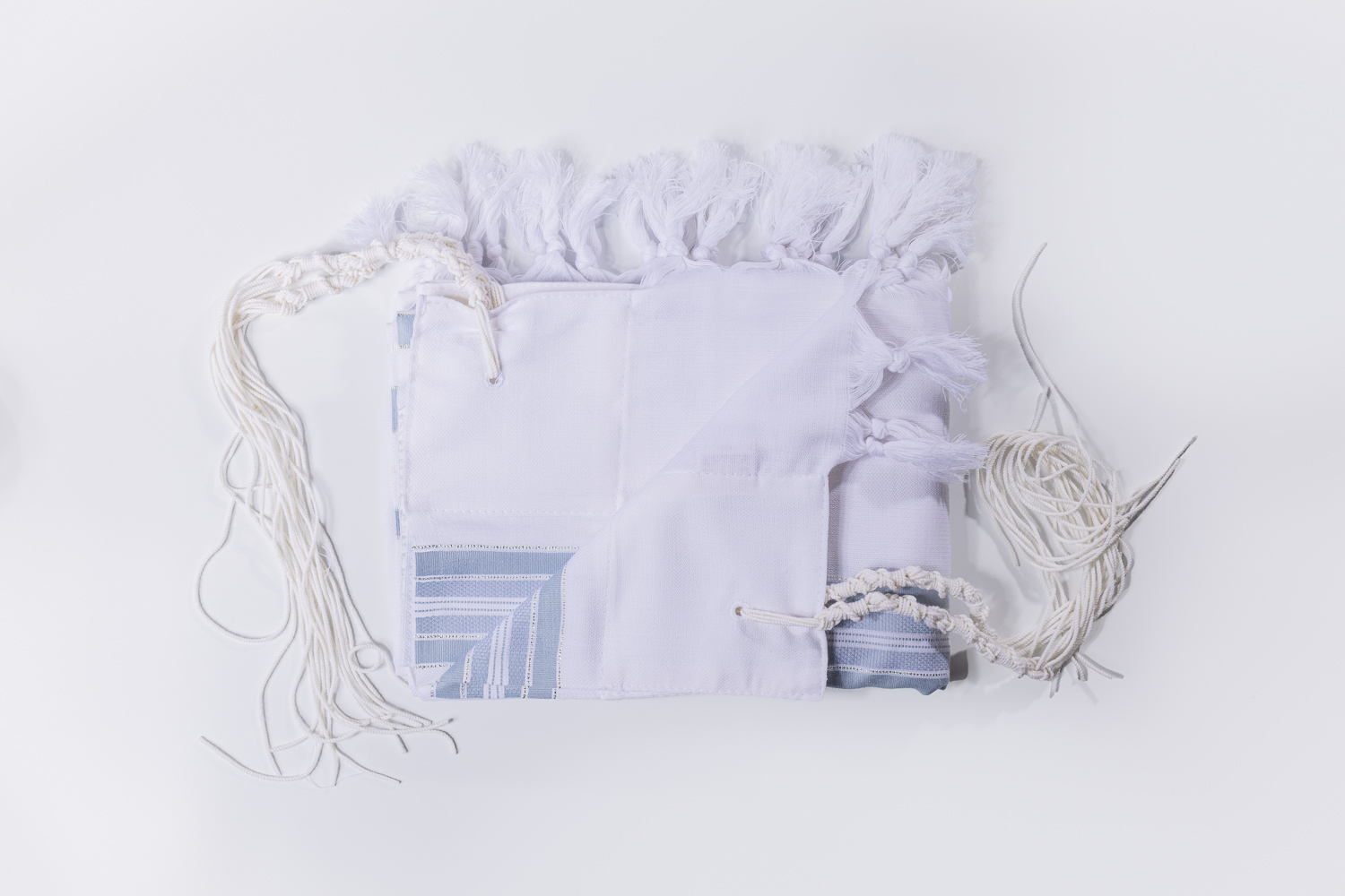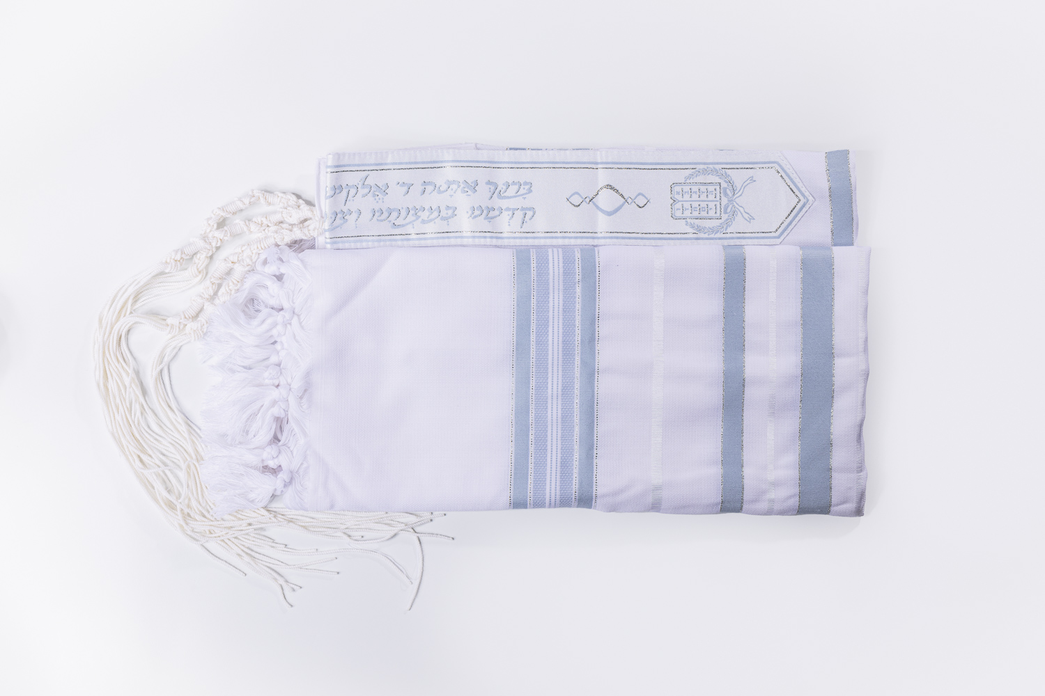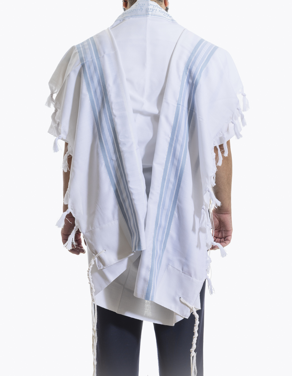 טלית מהודרת מצמר עם פסים בצבע תכלת