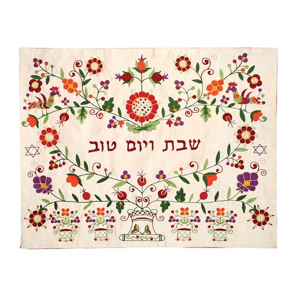 כיסוי חלה לשבת עם רקמה אורינטלית צבעונית.