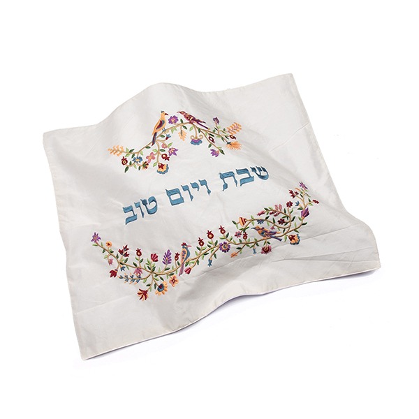 כיסוי חלה לשבת עם רקמה של ציפורים ופרחים