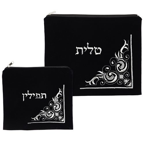 3. תיק לטלית ותפילין קלאסי מקטיפה בצבע כחול. מגיע עם כיסוי פלסטיק PVC