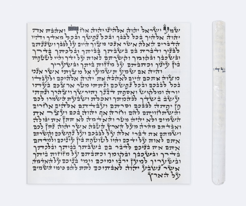 קלף מזוזה אשכנזי כשר על פי ההלכה, אורך 12 ס"מ.